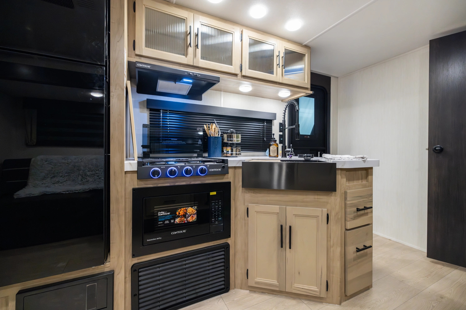 • Blackout Glass, Safety Slam, Friction Hinge Entry Door with Window and Shade Prep (N/A on LP models)