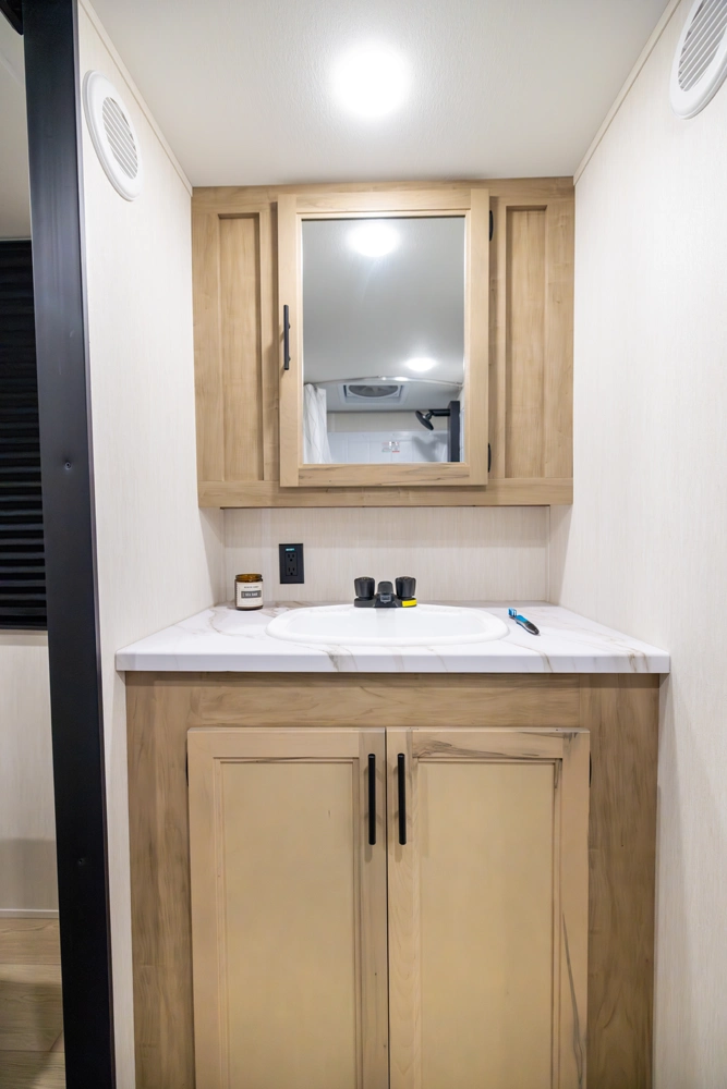 • Blackout Glass, Safety Slam, Friction Hinge Entry Door with Window and Shade Prep (N/A on LP models)