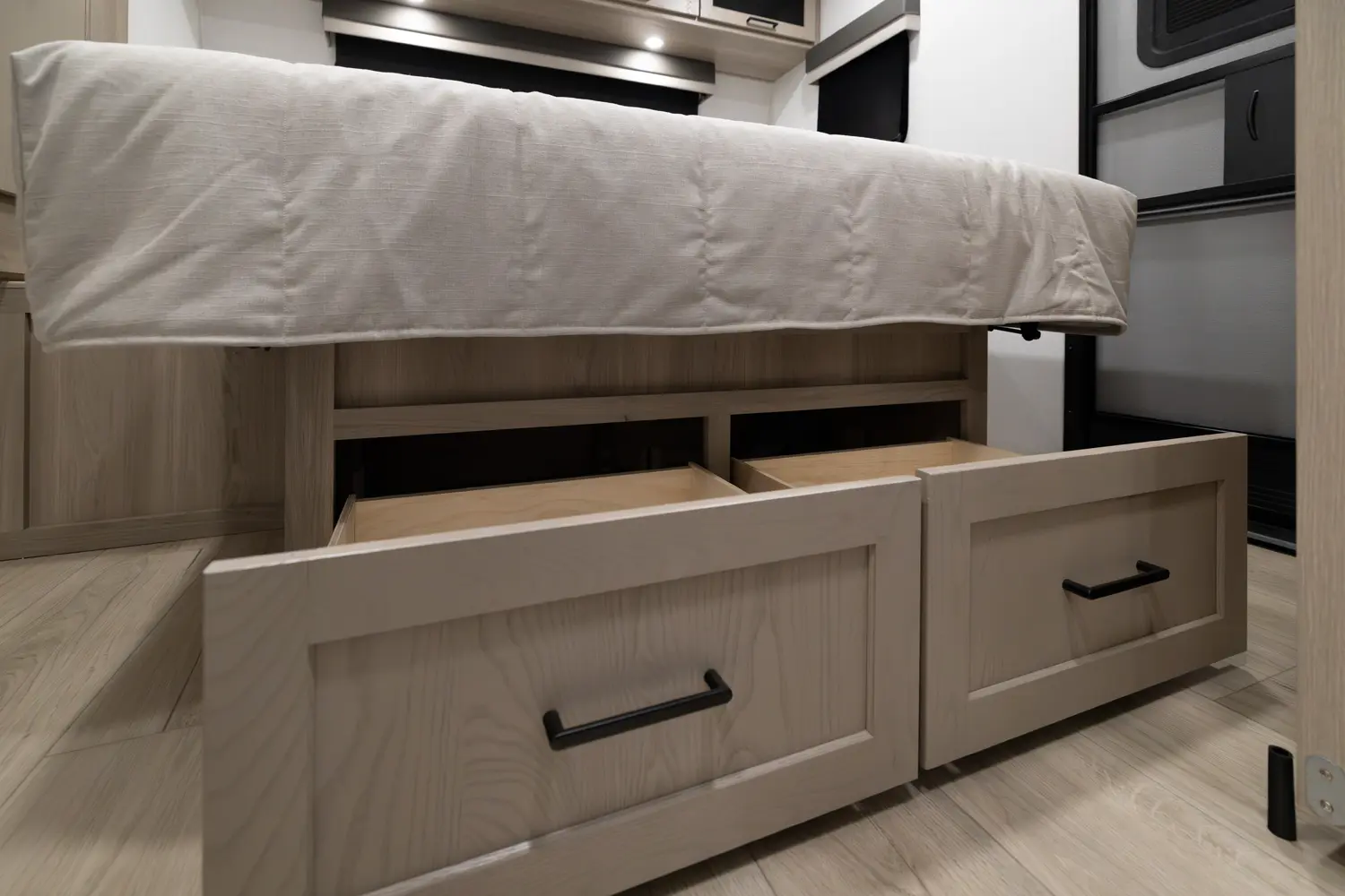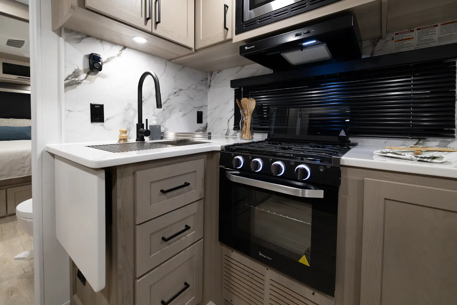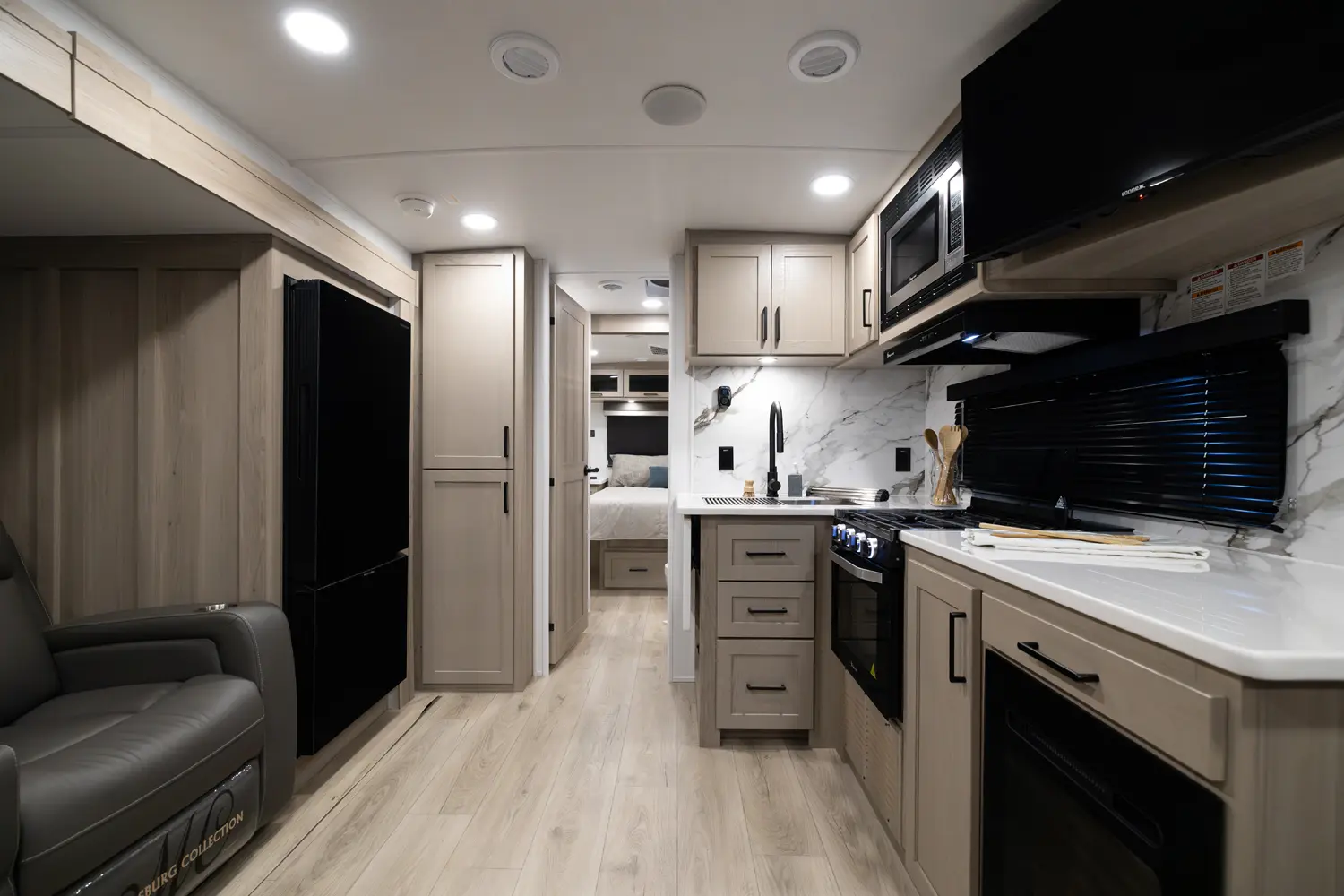 • Platinum Package: Auto Leveling, Frameless Windows, 1800W Inverter, MORryde Strut Assist Entry Step, Dual 30 LP Tanks