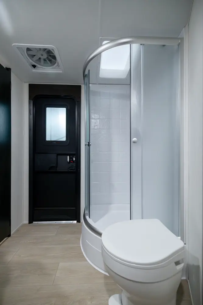 • Blackout Glass, Safety Slam, Friction Hinge Entry Door with Window and Shade Prep (N/A on LP models)