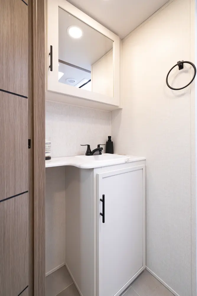 • 110 Outlet & 12V Charging Ports Beside Bed