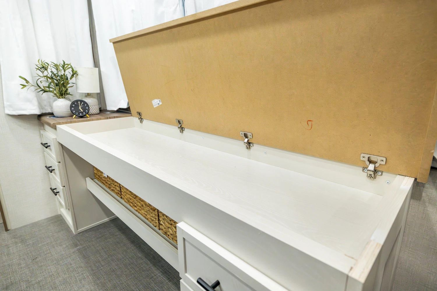 • Gas Strut Assisted Bed Lift with Storage