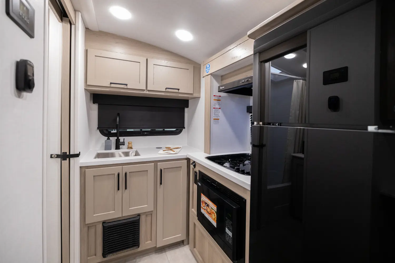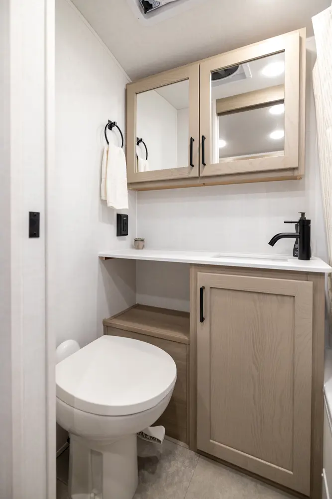 The Rockwood Geo Pro 15FBS delivers a smart, space-efficient layout and a compact, easy-to-tow trailer. The Murphy bed quickly converts into a comfortable sofa, giving you both living and sleeping space. A functional rear kitchen offers solid prep space and storage, while the large side bathroom features a squared shower providing extra comfort and room not often found in trailers this size.