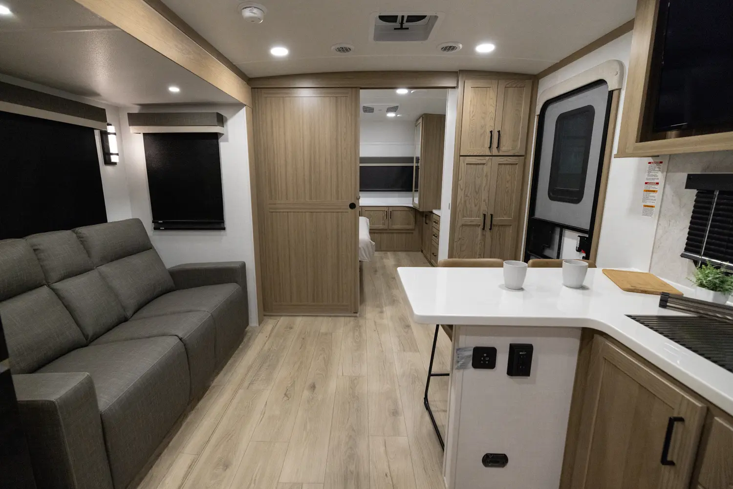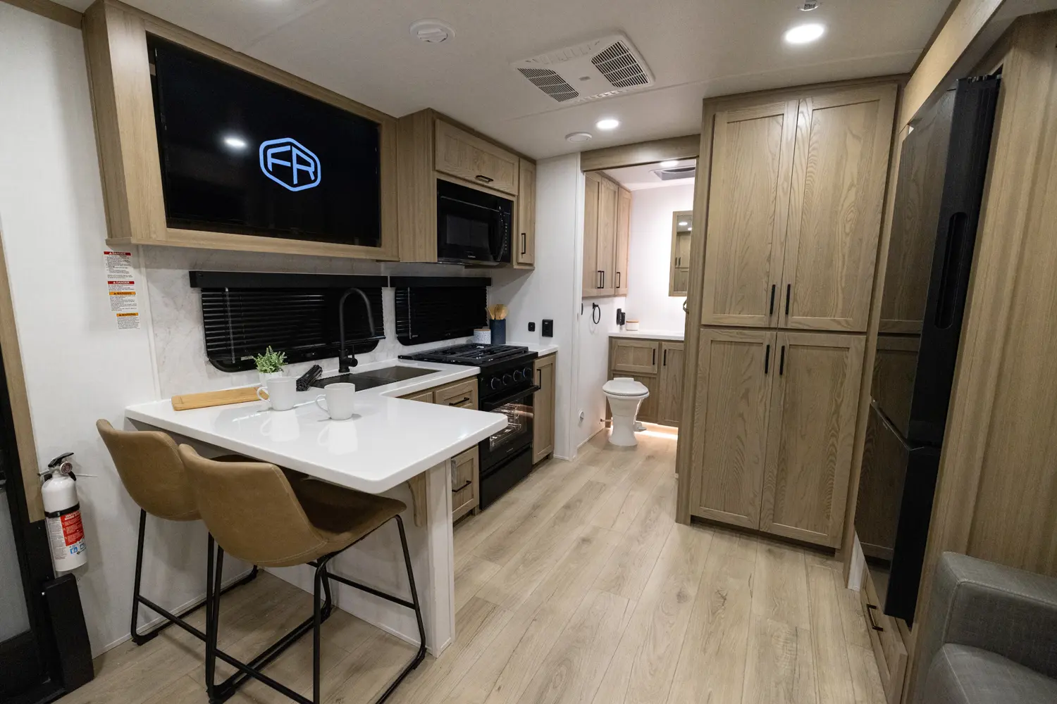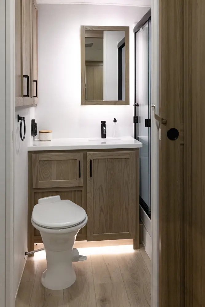 Adding another suites series model to our lineup, this floor plan might just take the bacon. With a giant king bed standard, enough storage for all your snacks, and an outside kitchen that is a chef's dream, this model has it all in a length under 30 ft.