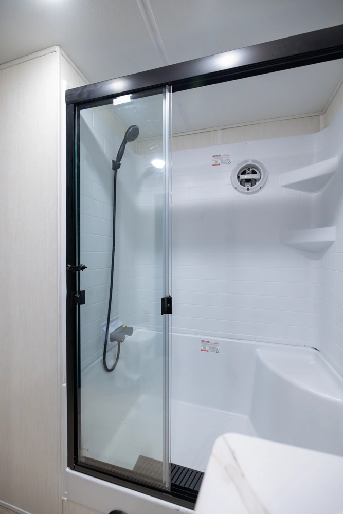 • Blackout Glass, Safety Slam, Friction Hinge Entry Door with Window and Shade Prep (N/A on LP models)