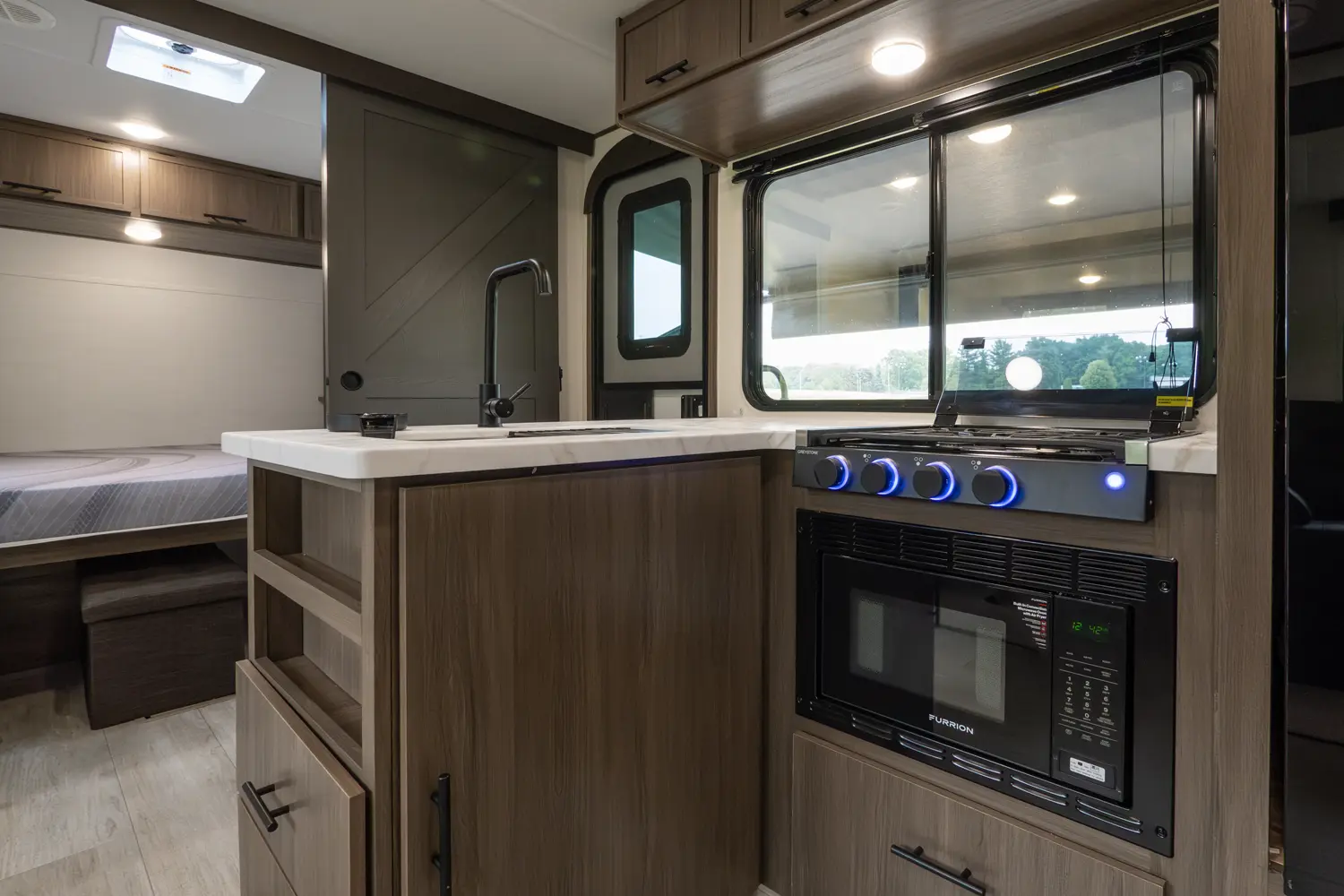 • Enclosed Overhead Storage Above Bed