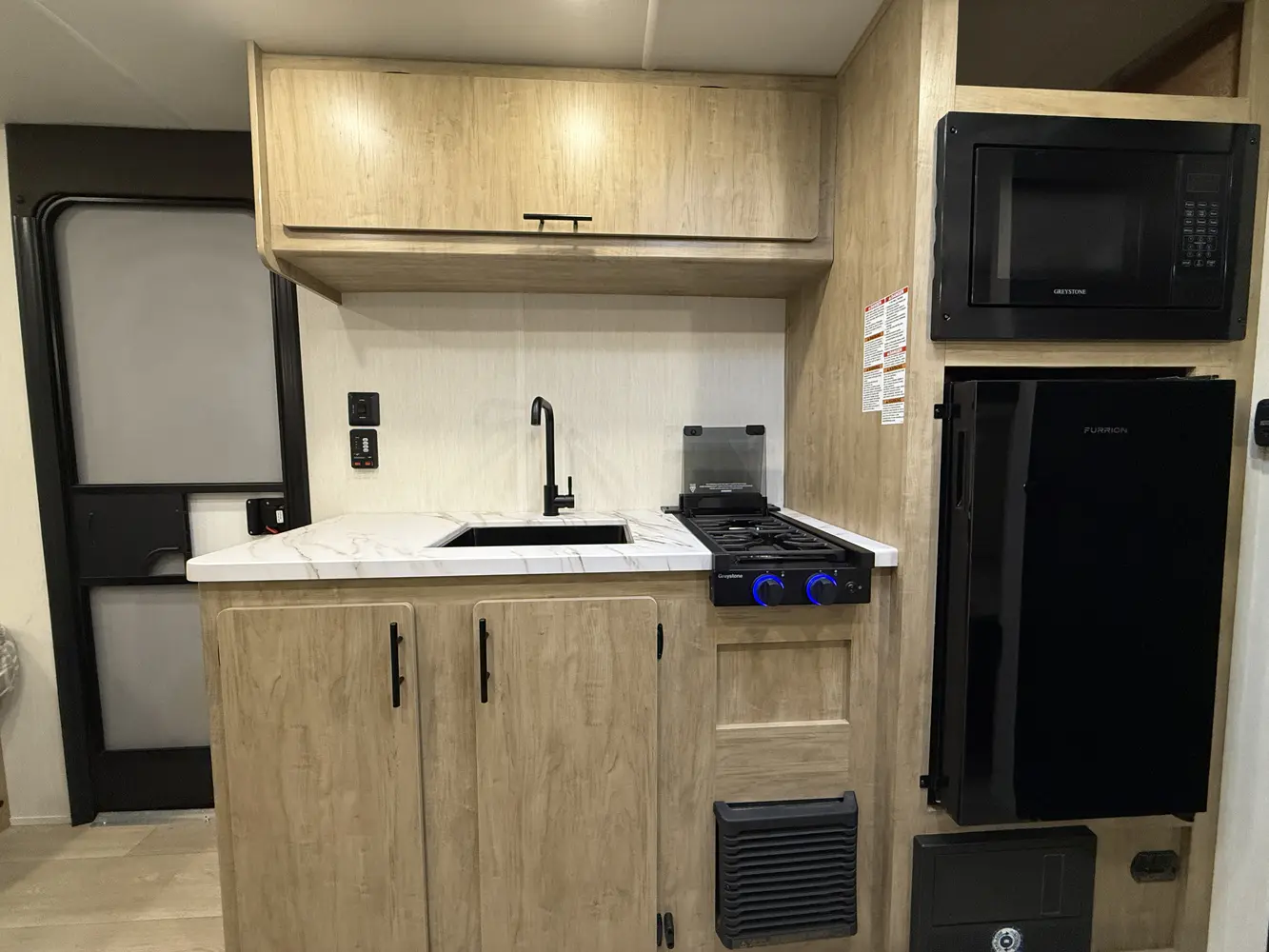 • Cherokee Black Label Wolf Pup (Deep Tinted Frameless Automotive Glass Windows, High Gloss Gel Coat Exterior Sidewalls, Multicolor Reading Lights, Pillowtop Mattress Upgrade, Power Tongue Jack, Pull Out Sprayer Faucet, Solid Surface Countertops, Thermo Foil Arctic Insulation)