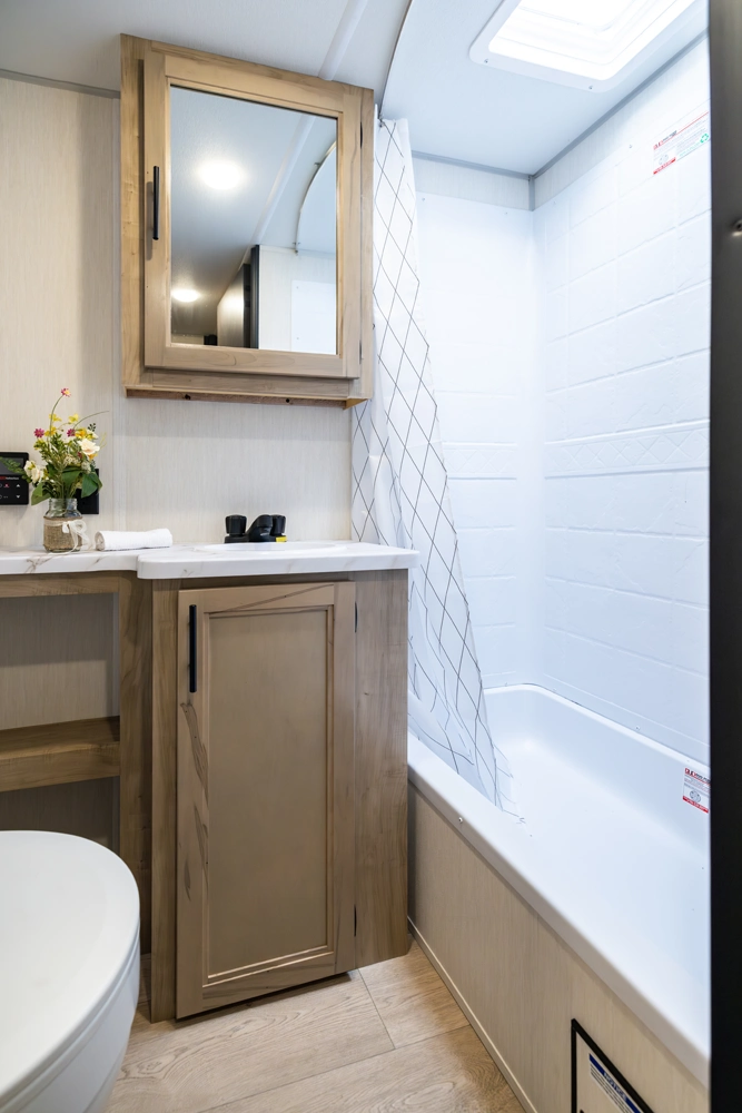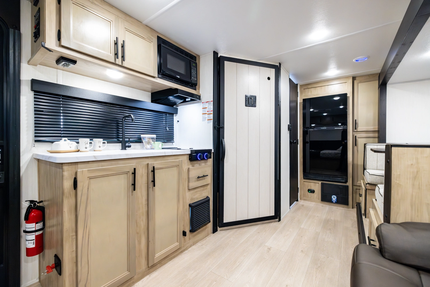 • Blackout Glass, Safety Slam, Friction Hinge Entry Door with Window and Shade Prep (N/A on LP models)